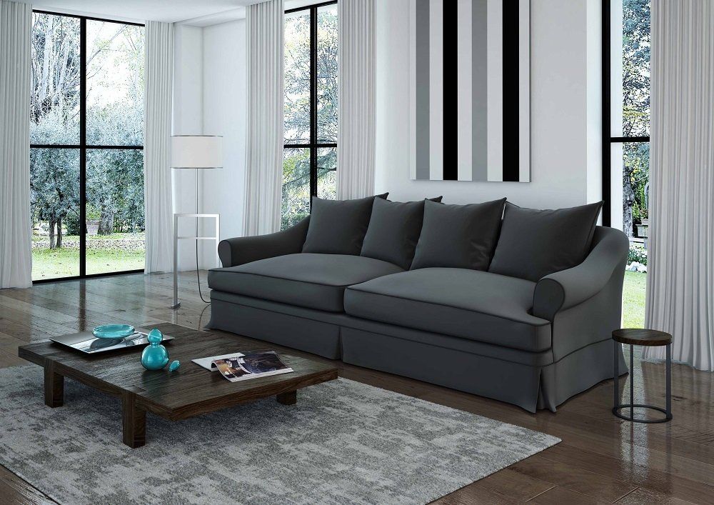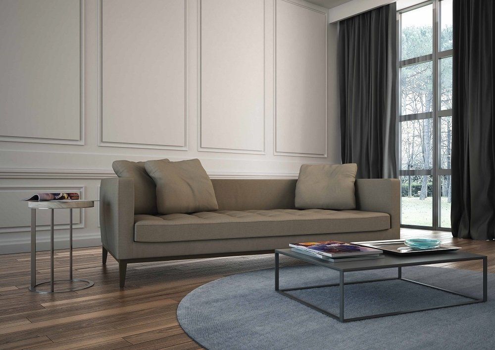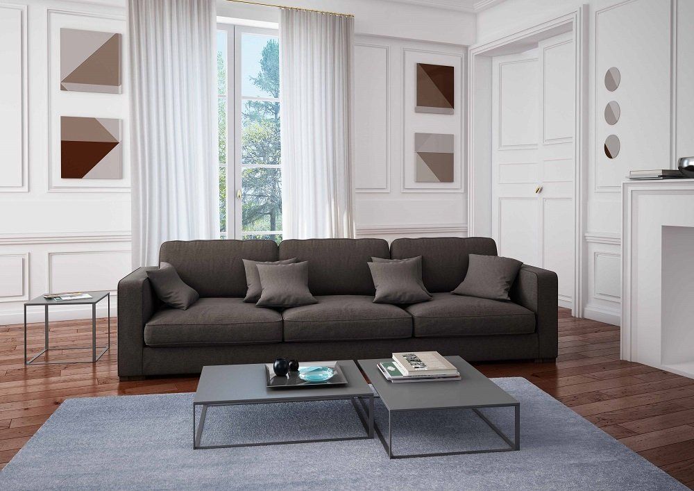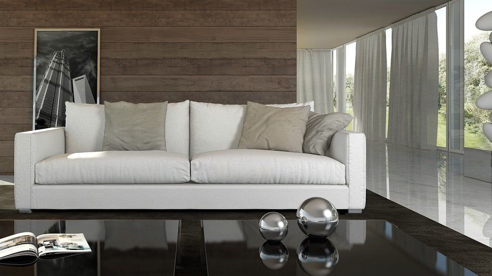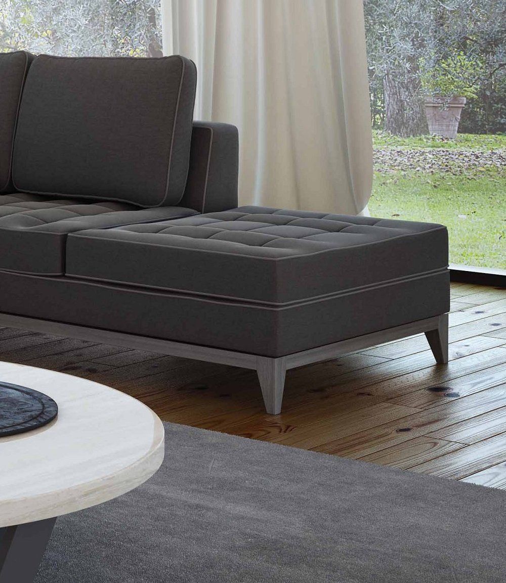 Divano moderno con linee squadrate dalle ottime rifiniture, impreziosito da una accurata lavorazione artigianale di trapuntatura nei cuscini. Dall’aspetto soffice ed accomodante, semplice e raffinato.