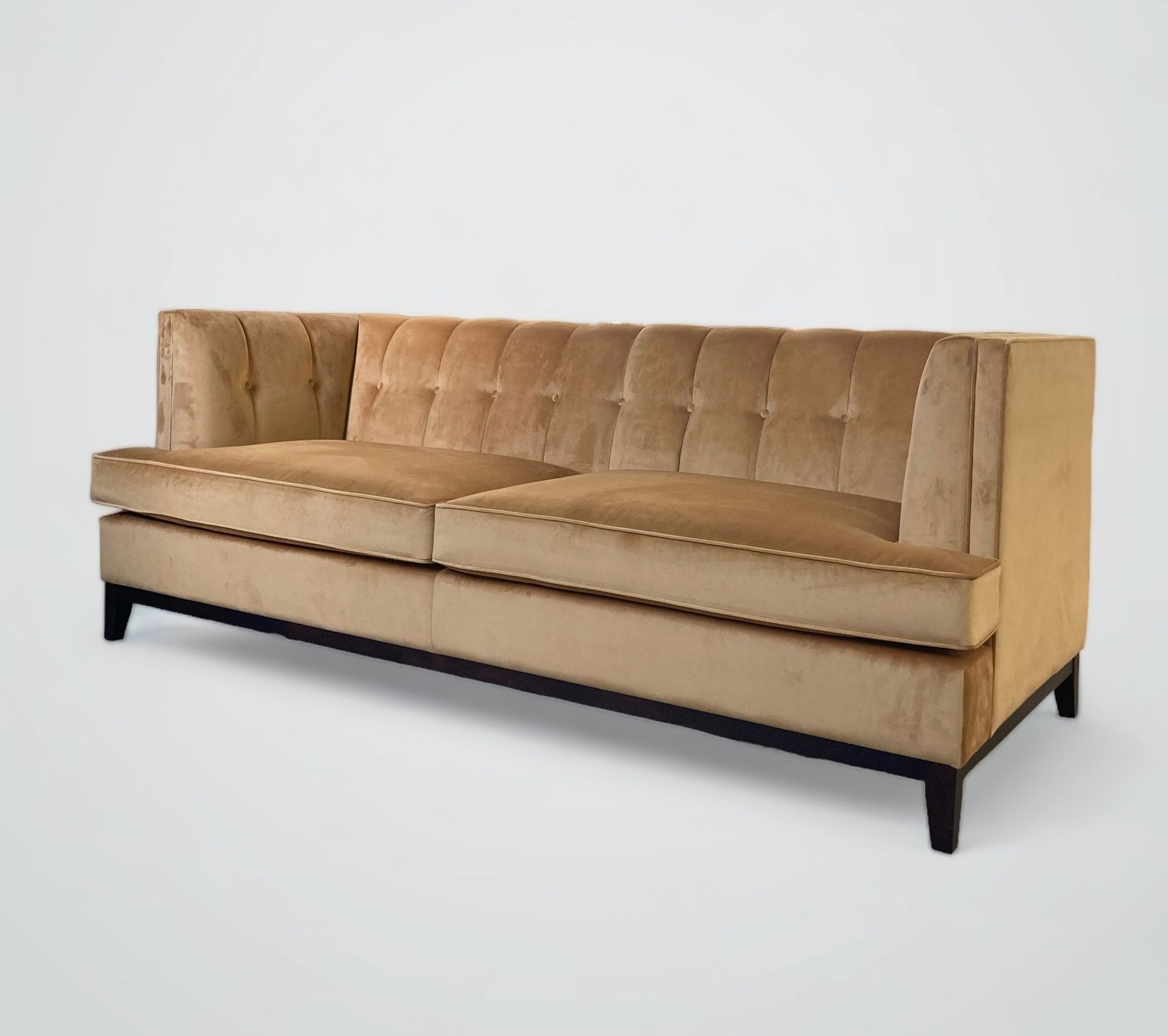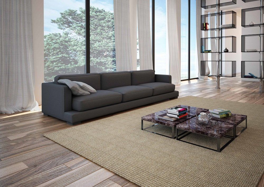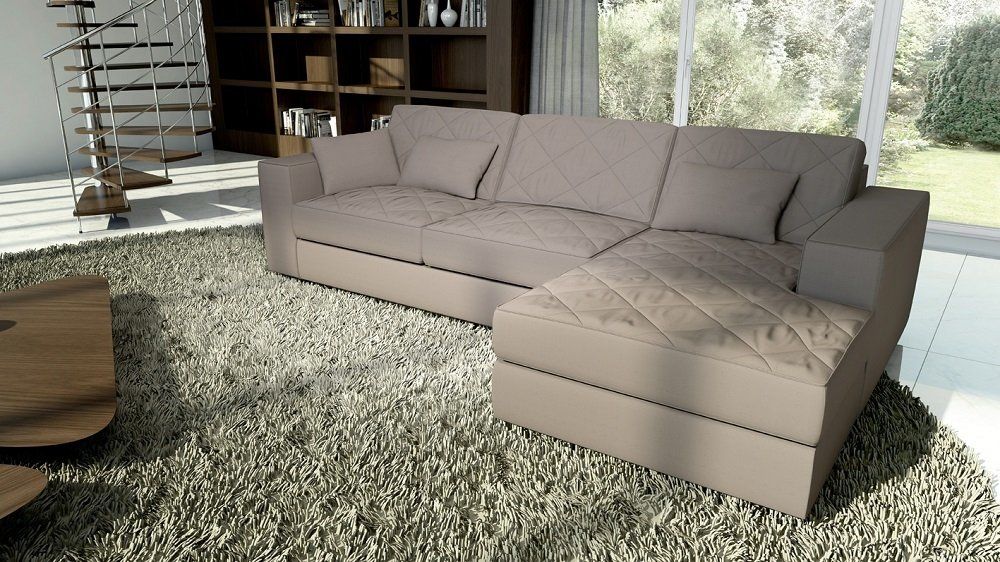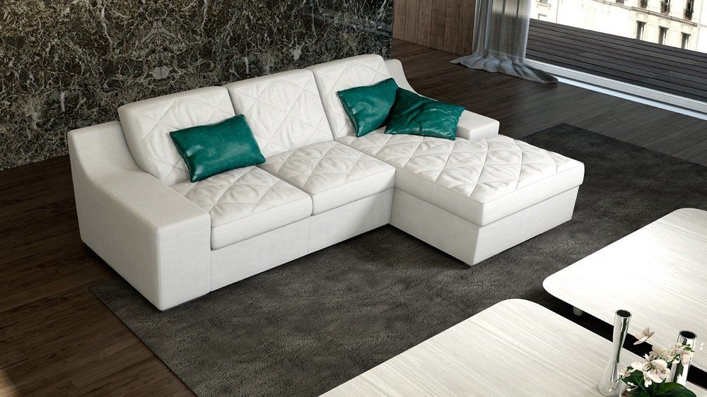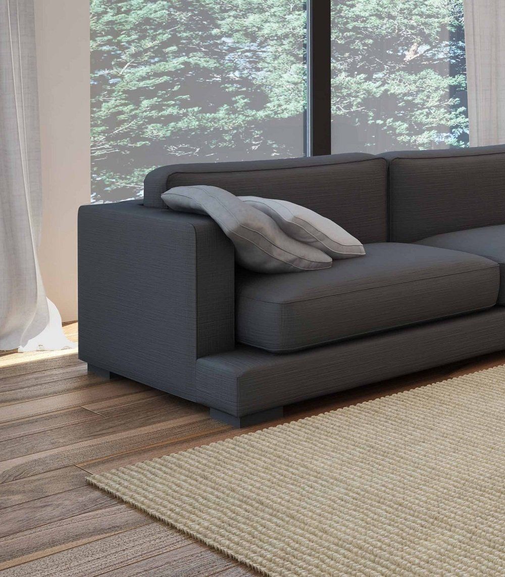Divano moderno con linee squadrate dalle ottime rifiniture, impreziosito da una accurata lavorazione artigianale di trapuntatura nei cuscini. Dall’aspetto soffice ed accomodante, semplice e raffinato.
