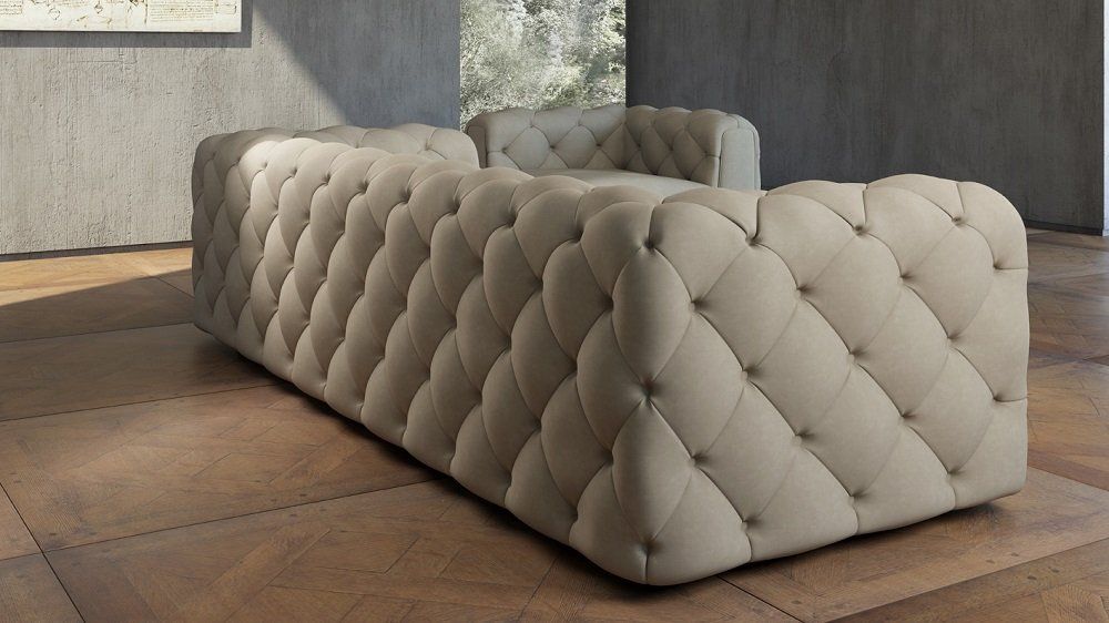 Divano dal gusto ricercato, dalle linee morbide e preziose, con la sua lavorazione artigianale a capitonnè, i suoi rombi e i bottoni che affondano nell’imbottitura, creano un connubbio perfetto che permette di inserire questo divano in un ambiente raffinato, sia classico che moderno.