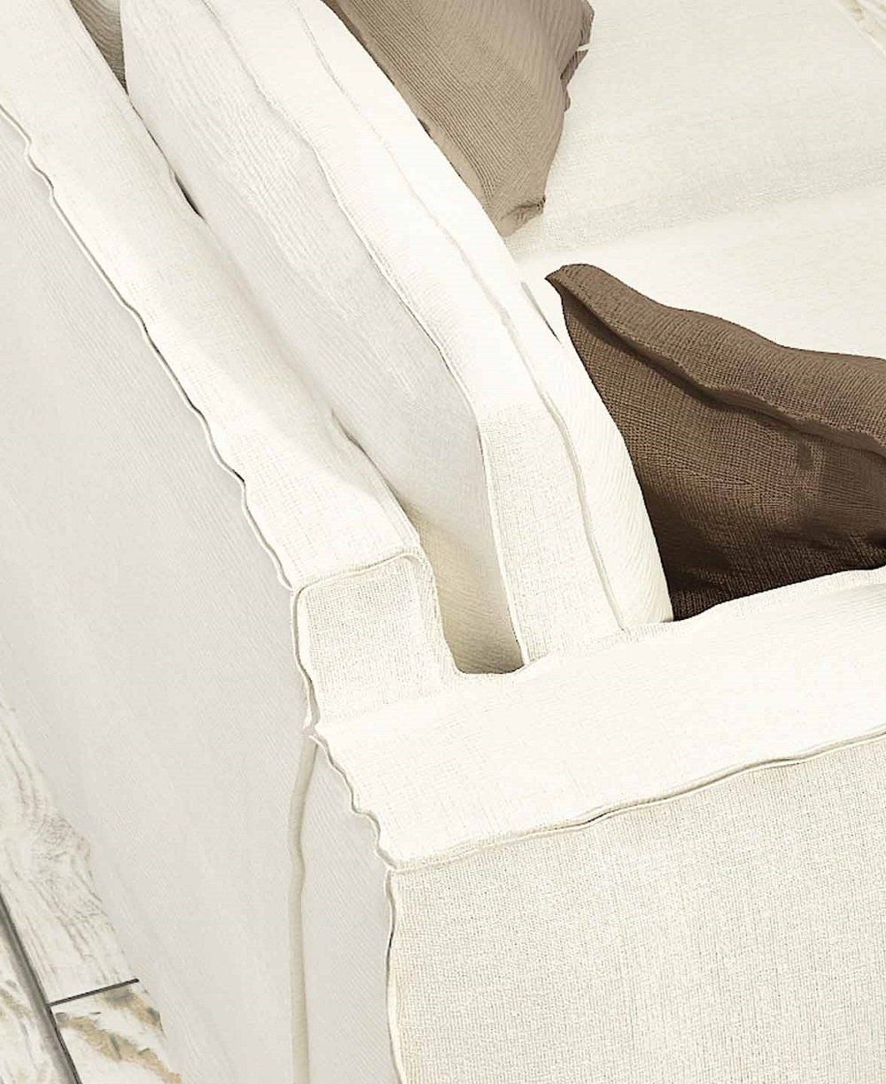 Design morbido e accogliente impreziosito dalla particolare lavorazione artigianale a doppia fettuccia che enfatizza le sue linee essenziali.